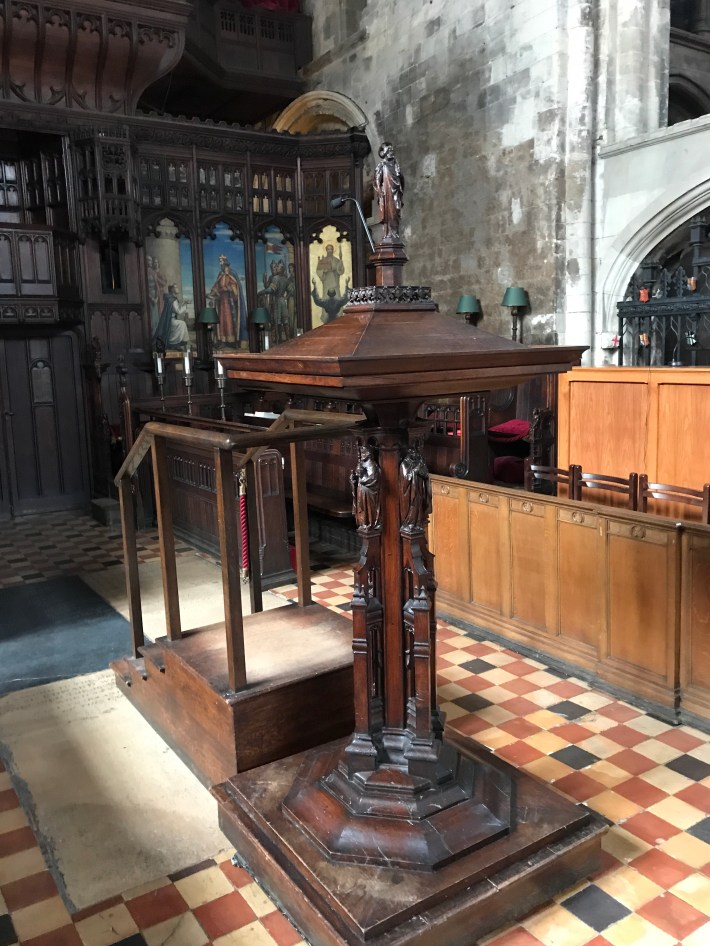 The Great Lectern has been fashioned from ancient timbers from the Lady Chapel (no lace though).