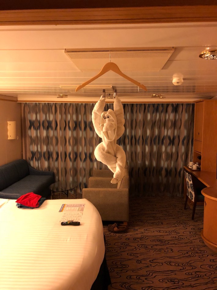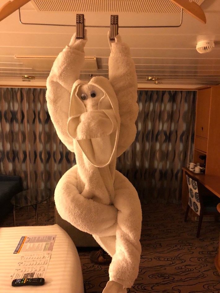 On returning to my cabin I am greeted by some artistic endeavours of the cabin boy (A+ for effort).