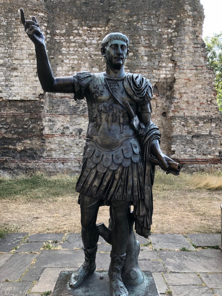 Here is the emperor Trajan giving me the finger as I inspected one of the best surviving pieces of the London Wall.