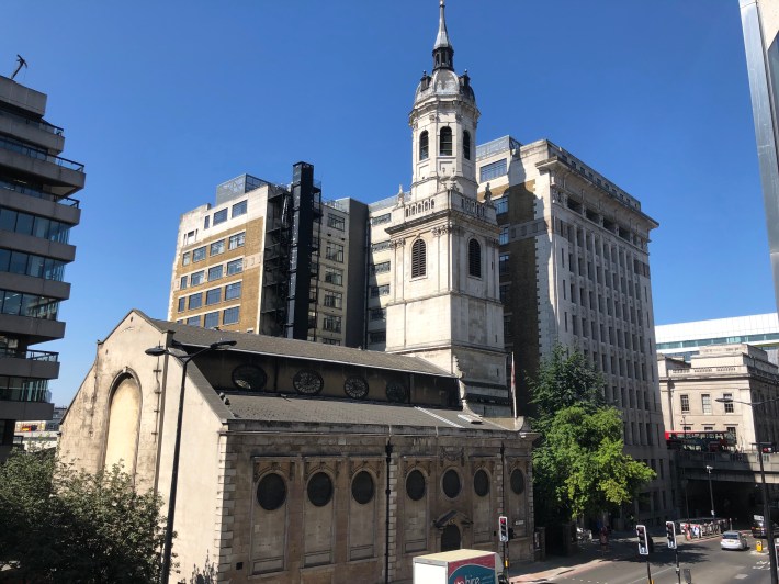 St Magnus the Martyr church whose entry once adjoined the road over London Bridge – now squashed in against an adjoining building following the re-routing of the bridge and approaches.