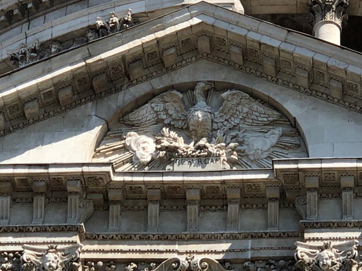 Very interesting information about St Paul’s construction by Wren and interior ‘redecoration’ during the Victorian times. Above we see the symbol of a Phoenix rising from the ashes, just as the new St Paul’s did after the Great Fire of London.