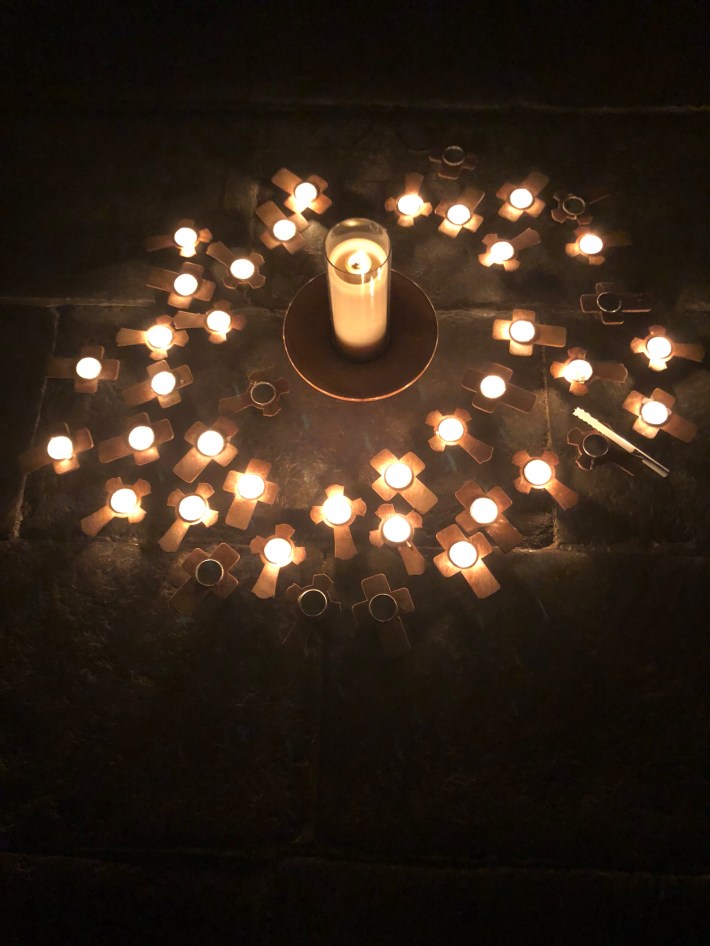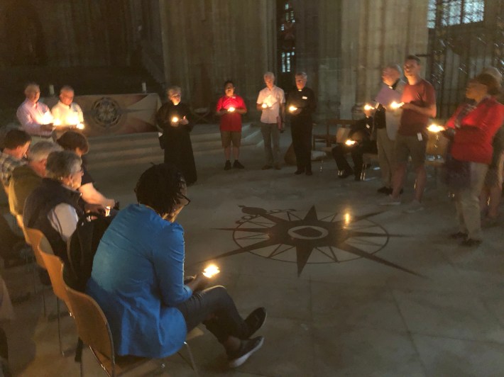 We gathered by the font as dusk set in and prayed and chanted out way through the darkened cathedral, past the Compass Rose, representing the Anglican Communion and the home of pilgrims to Canterbury from around the world.