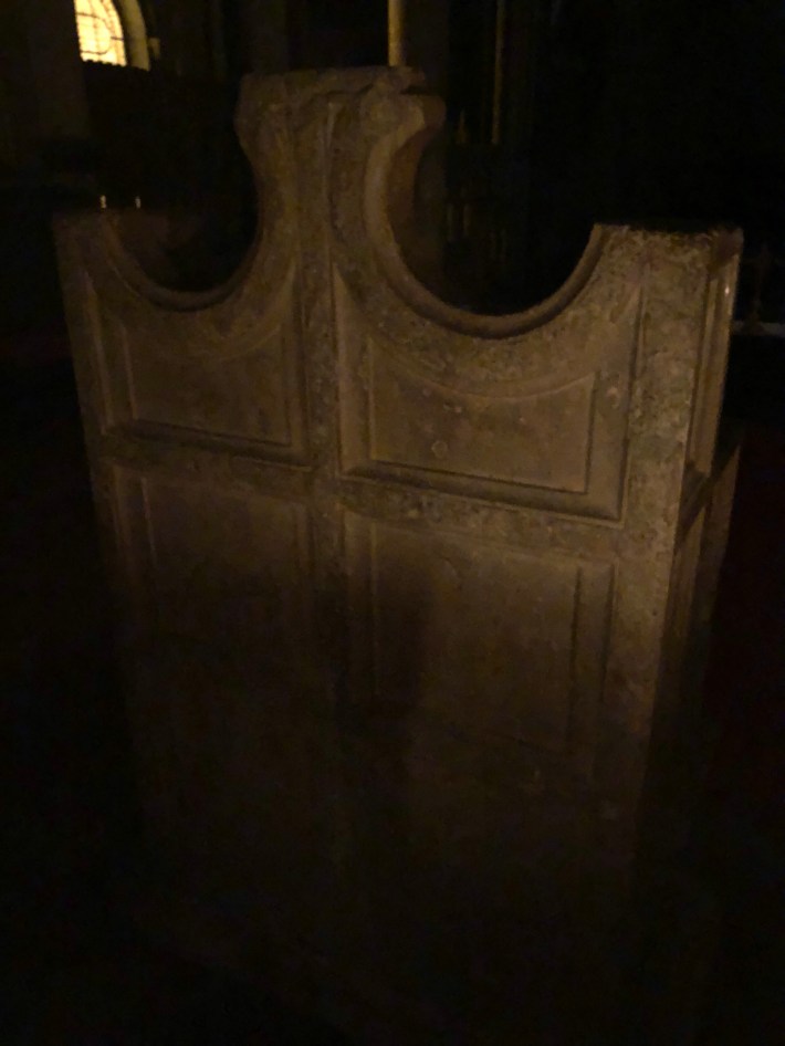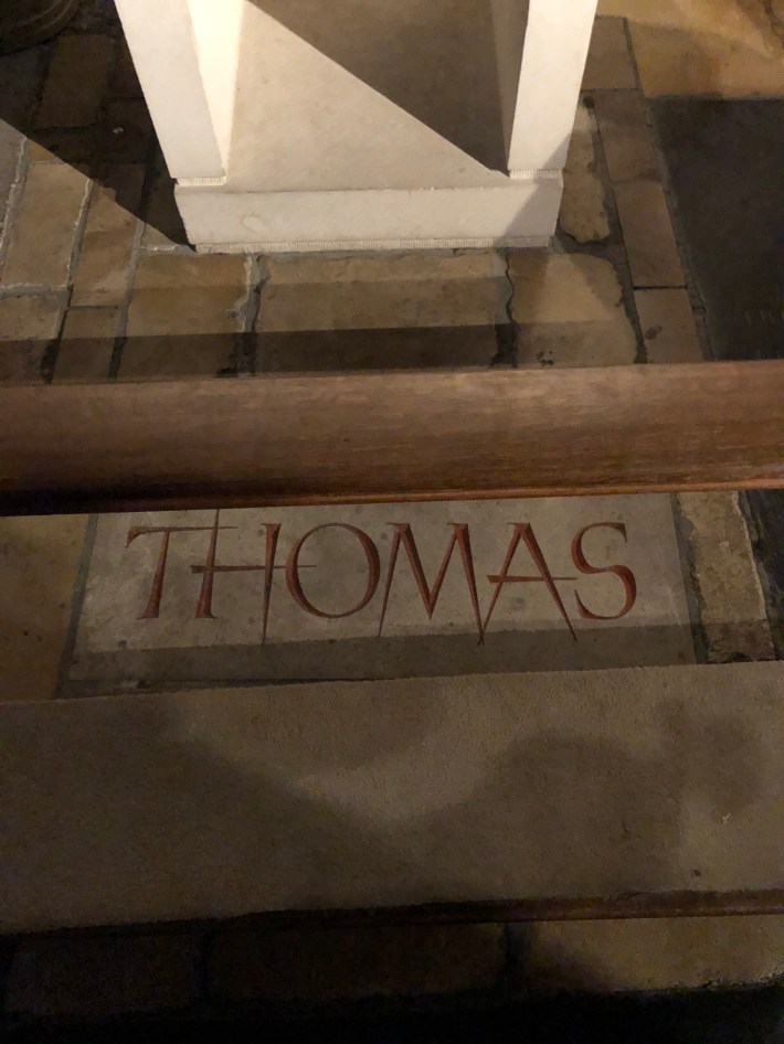 We then journeyed up the pilgrim steps (no I didn’t do this on my knees, although we were invited to do so) to the place of the Shrine of Thomas Becket, destroyed in the English Reformation, but marked with a single candle.