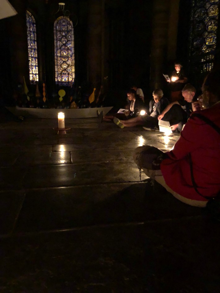 We were seated in the quire for Choral Evensong this evening and returned after dinner for a candlelight pilgrimage – a private spiritual team in the cathedral. This was very special.