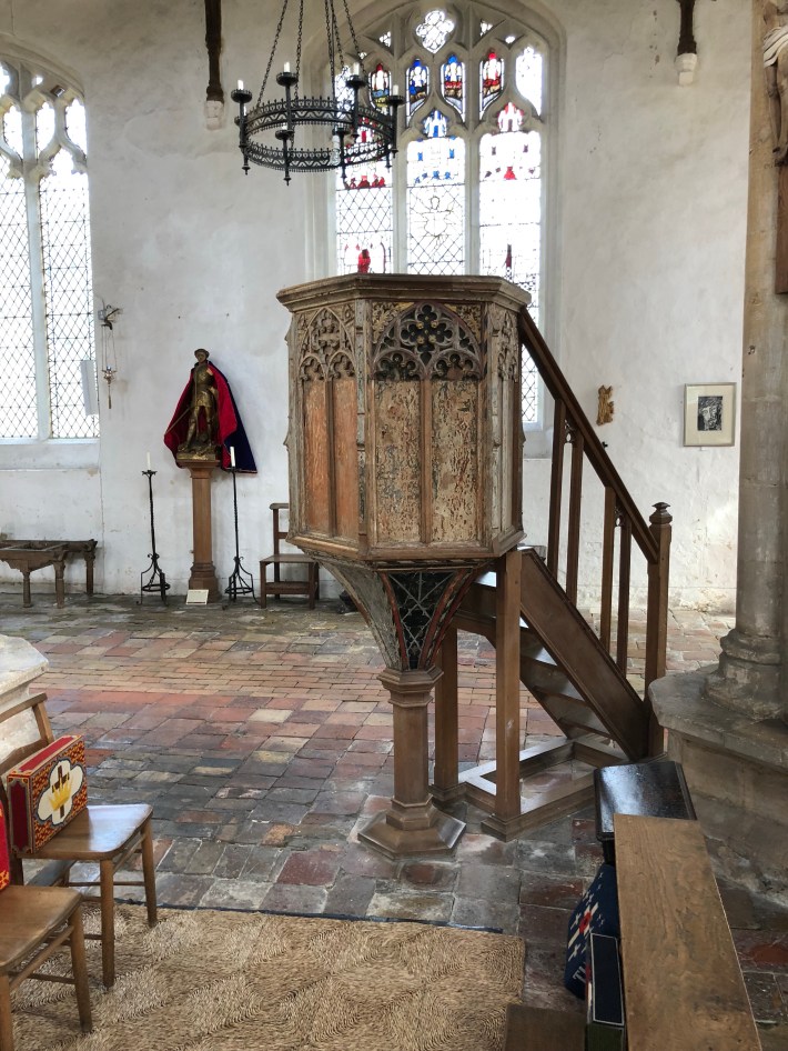 The fifteenth century rood screen is quite intricate but has also suffered from the same sixteenth century iconoclasm as the pulpit and font.