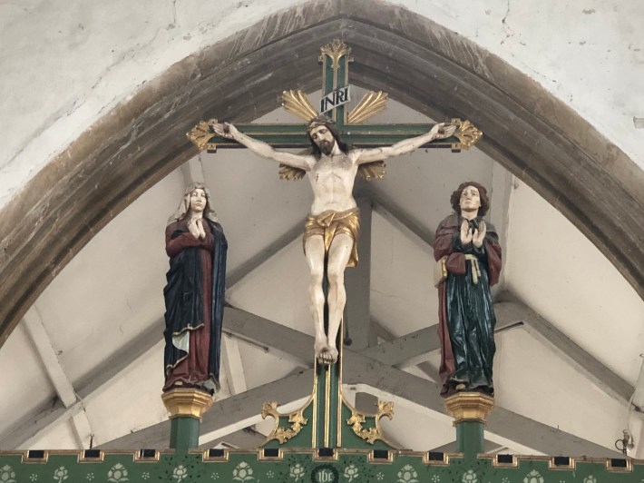 The rood figures are by the well known nineteenth century artist, Arthur Blomfield.