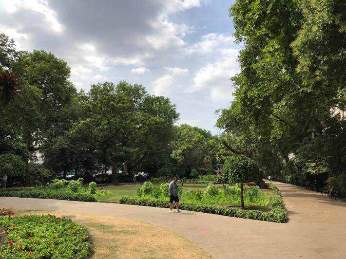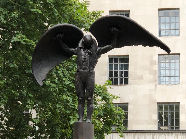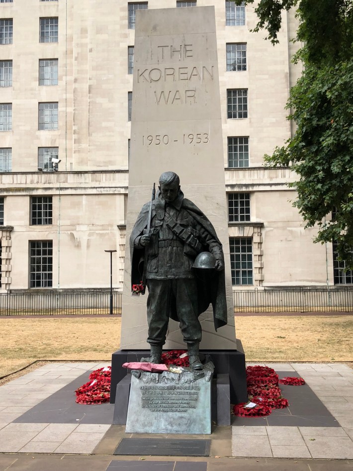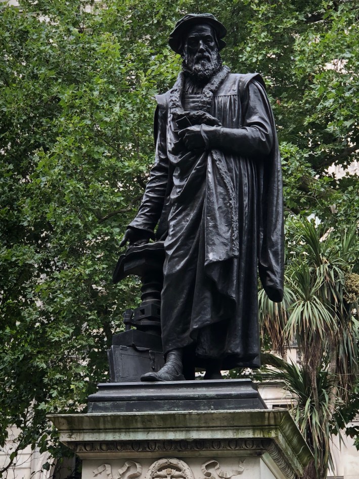 There were quite a few statues and memorials in today’s walk. The first was William Tyndale. I’m not sure why he is in the Embankment Gardens nor where he acquired the mobile phone that he appears to be clutching.