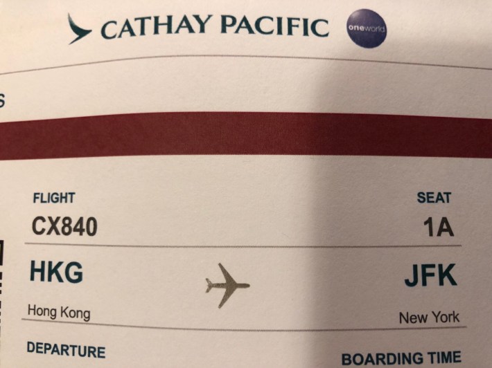 I had a very comfortable trip to Hong Kong but we had to stay in a holding pattern for ten minutes and then when the place got to the gate, there was no one to meet us, so we had to wait ages on the plane before someone came to operate the airbridge so we could disembark. Consequently my 50 minute transit time became 15 and it seemed ever unlikely that I would make my connection. So many hurdles to go through to get the connection. You have to go through the security check again, this time amount mainland locals drinking from thermoses and carrying fishing rods. Then at the gate I had to show them my hotel booking in New York – some new Trumpian requirement.