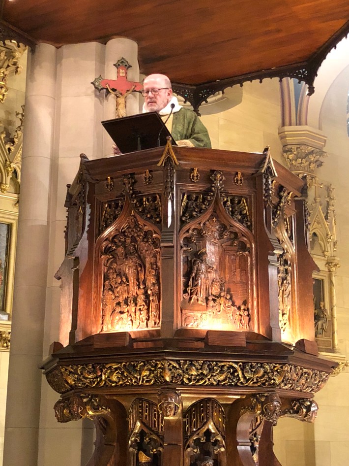 An excellent sermon by Fr James Smith, the curate – six feet above contradiction and in a well-illuminated pulpit.