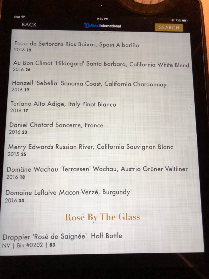 The wine list was presented on an iPad. I selected the one with the word Hildegard in it, for want of a systematic method of choosing foreign wines.