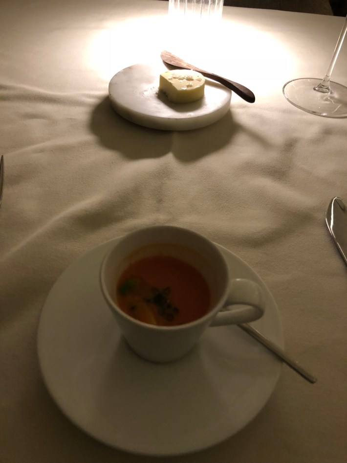 The meal began with a demi-tasse of gazpacho. Delish and complimentary.