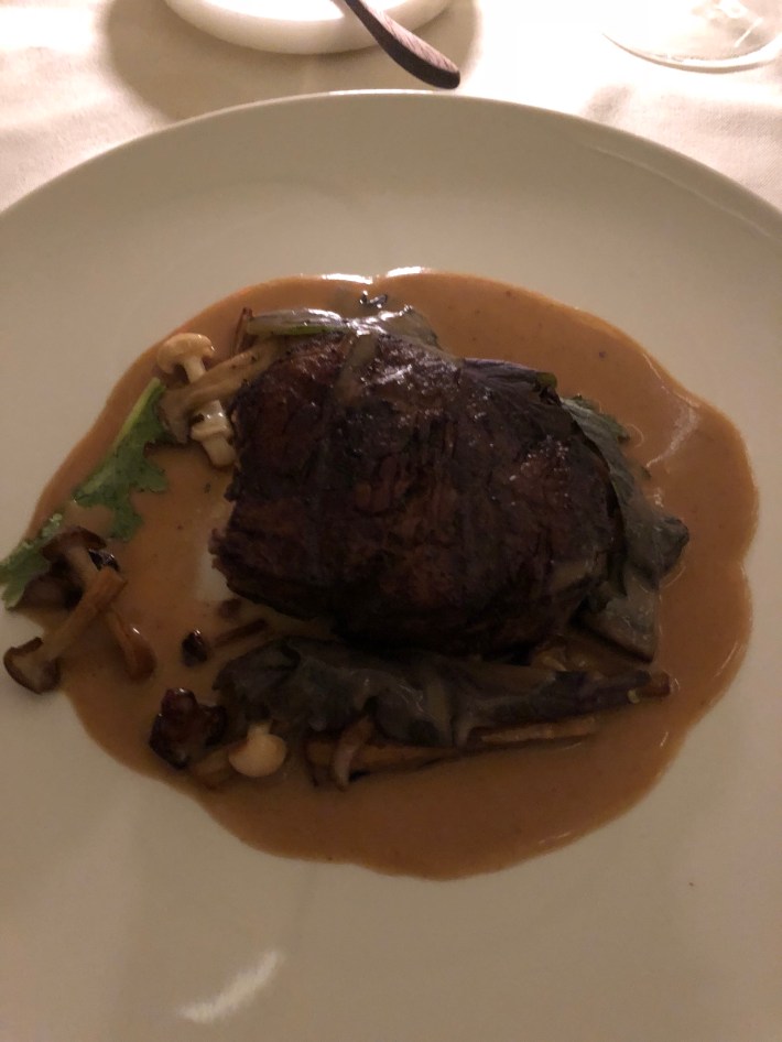 From the sleek bar area, guests travel through a tunnel to the restaurant at the rear of the building. Jackets are required. This is not a tourist restaurant but a place where rich New Yorkers eat and, apparently, for their birthdays. There was lots of table hopping as everyone knew everyone (but not in a trashy way), except me who had to take a booking at 9.45pm just to get in.