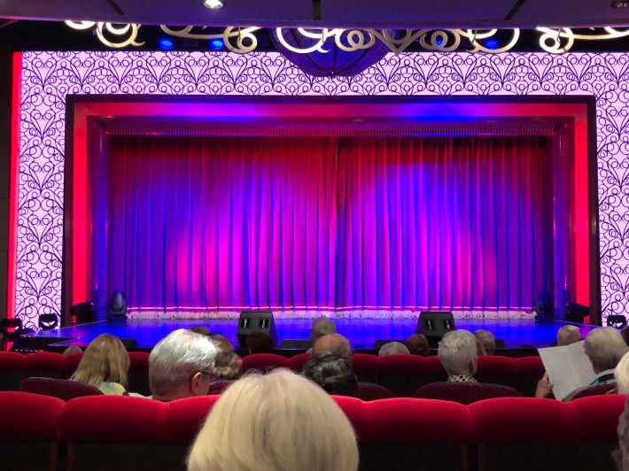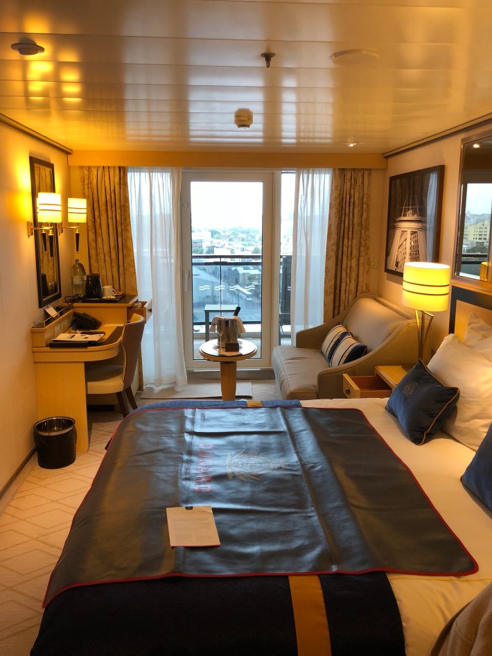 Our emergency drill went well. I have to go to the gym in an emergency, somewhat ironic. The dancers from the nightly stage show are part of our guides. Managed to get my life jacket on and off. Couldn’t get the straps done up again so I left it on my bed for my steward, Albert, to put away.