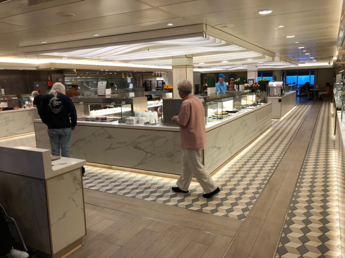 This evening I completely mucked up my timing and was late for dinner. Couldn’t get my dinner suit on in time so I dined in the Kings Court buffet, the home of breakfast and lunch.