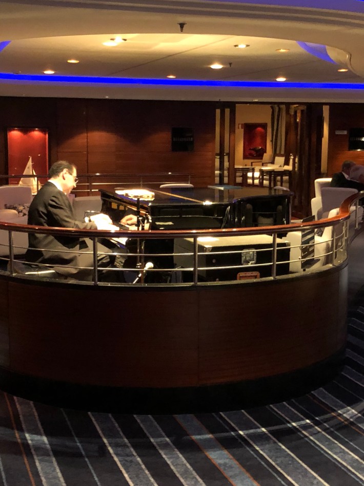 A terrific new song and dance review ‘Into the Night’ followed. Then karaoke for Max and an après drink for me in the Commodore Lounge.