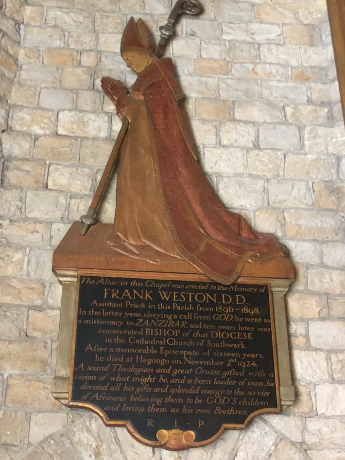 A memorial to Bishop Frank Weston in the entrance to St Matthew’s.