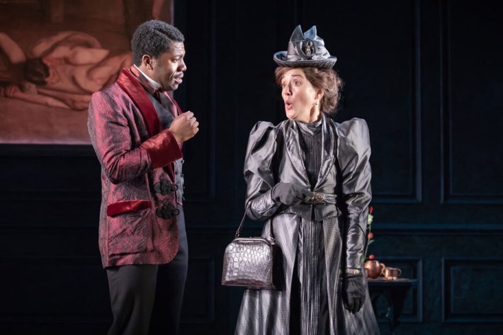 Well, this just wasn’t my favourite production of Oscar Wilde’s play – some miscasting certainly. Modern as it maybe, and unpopular to say so, but Algernon cannot be black. It simply does not fit the story. I couldn’t adjust visually nor reconcile the attitude of Lady Bracknell with her nephew’s appearance. Were we not meant to notice? Fehinti Balogun (RADA trained, WestEnd debut) did a reasonable job but he looked more pimp than dandy. I found his diction imperfect and Wilde’s script requires more careful delivery.