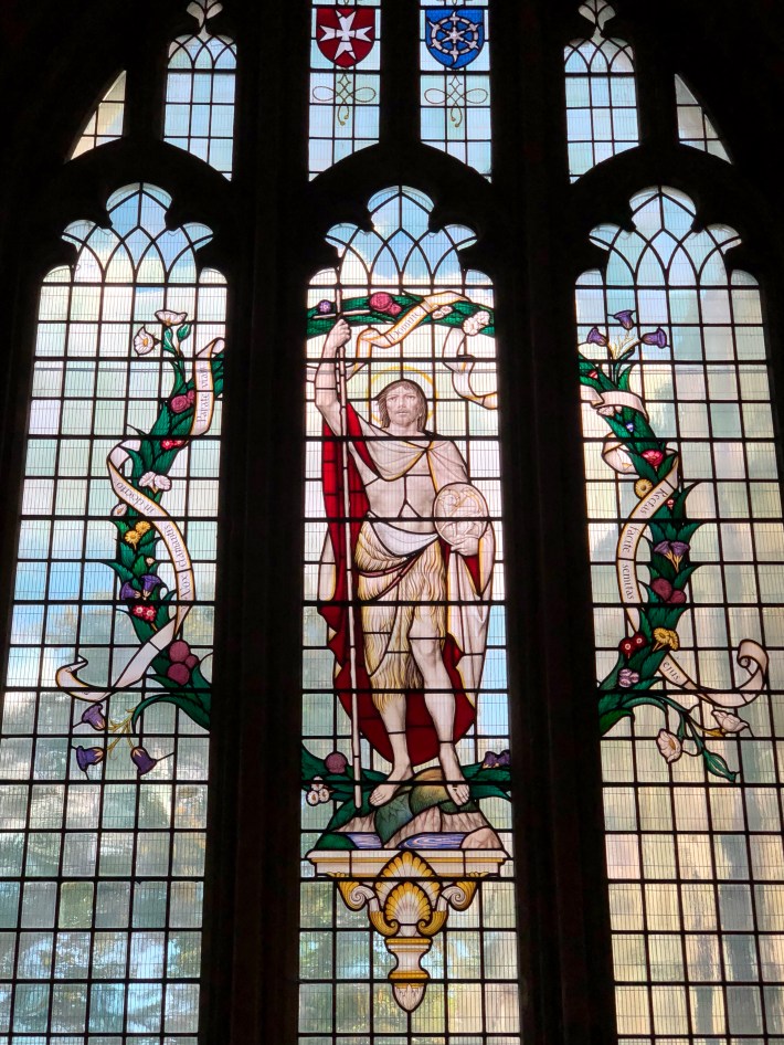 In the Chapel of St John the Baptist, a painting of Christ’s baptism by Patrick Proctor (1936- ) and in the Chapel of St Mary Magdalene, a painting ‘Noli me tangents (Touch me not) 1961’ by Graham Sutherland (1903-80).
