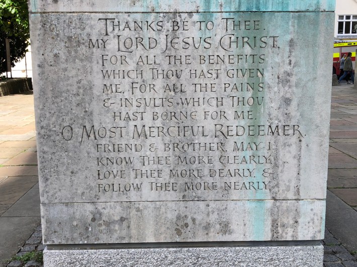 There are so many straight and curved lines of the building itself, inside and out. That was my first impression, then there was the figure of St Richard of Chichester, to my way of thinking, obviously so loved because he seems to be so bowed down, yet supported by the beautiful prayerful words. Then there were all the varied images of inside the cathedral itself. I can see a bit why it all made such an impression on you.
