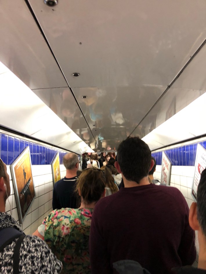 I had forgotten what happens when things go askew on the Tube. Here I am trapped on the stairs unable to get to the train platform.