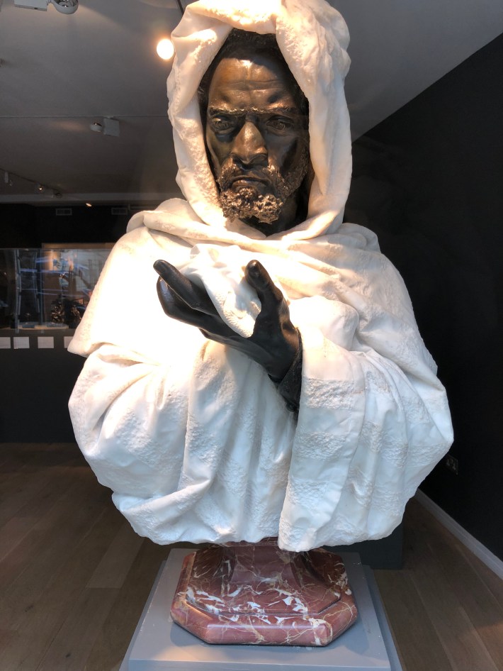 I did find a number of art dealers, including Christie’s, but the prices were numbing so I didn’t go in. I did rather like this sculpture of Othello by Pietro Calvi, Italian, carved in 1870.