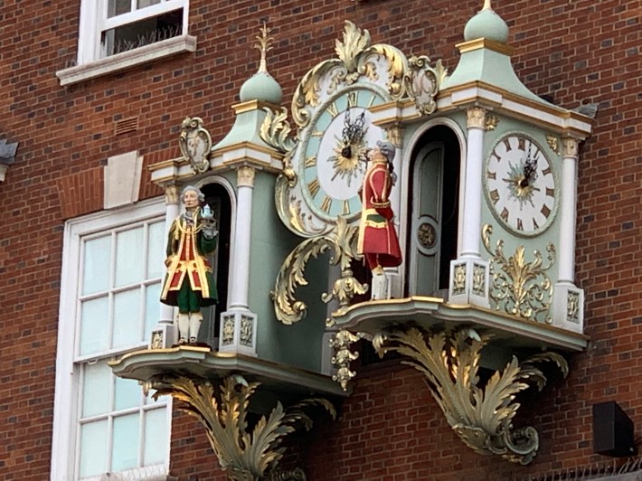 The clock struck twelve at Fortnum and Masons and Messrs. Fortnum and Mason appeared.
