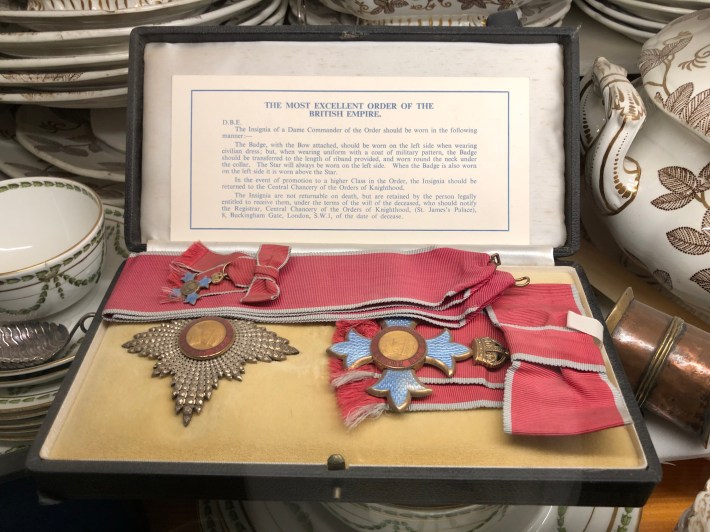 Her OBE was in a kitchen cupboard on some dishes. She had a smart dark blue AGA.