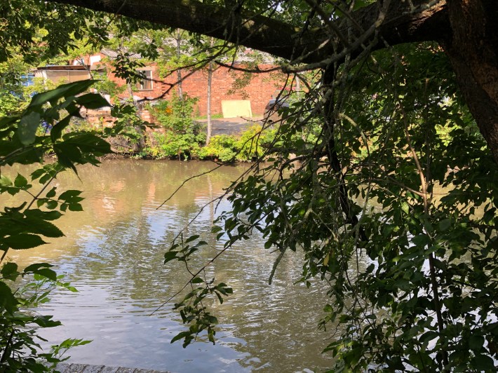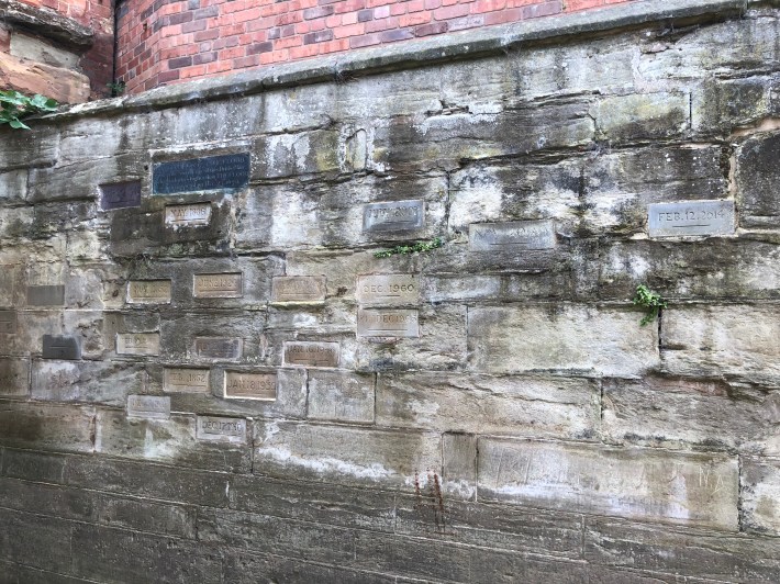 Picturesque walk along the riverside, with a reminder on one wall of the flood levels achieved over the centuries.