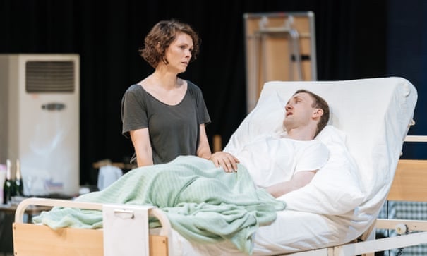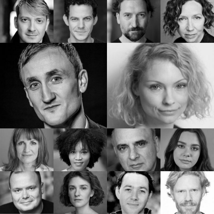 Quite a large cast playing multiple roles, though the centre actors above – They m Brooke as Alexander Litvinenko and MyAnna Buring as his wife, Marina – remained in character.