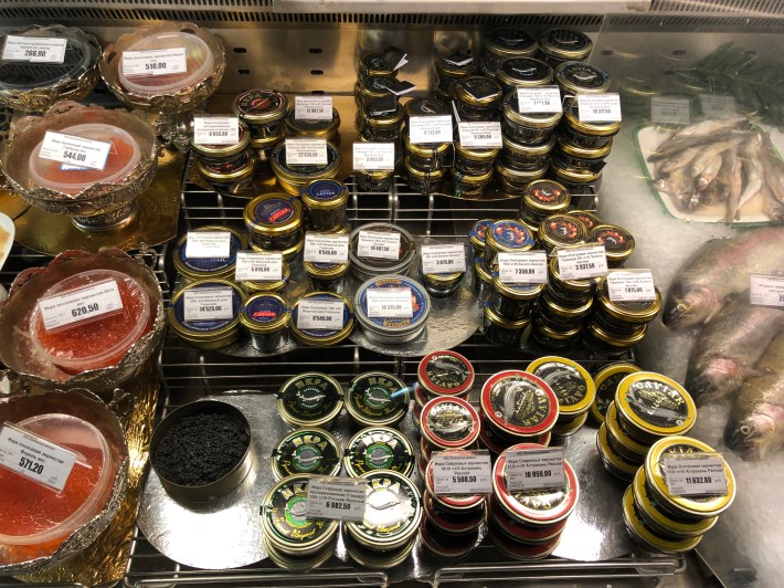 In the supermarket, one of the counters looks like the Russian Tidbits shop in Carnegie. Proves they are authentic, not just speaks the lingo.
