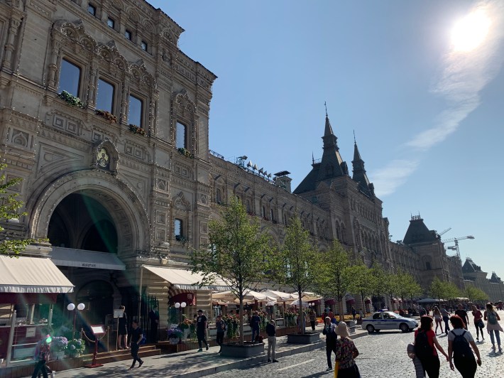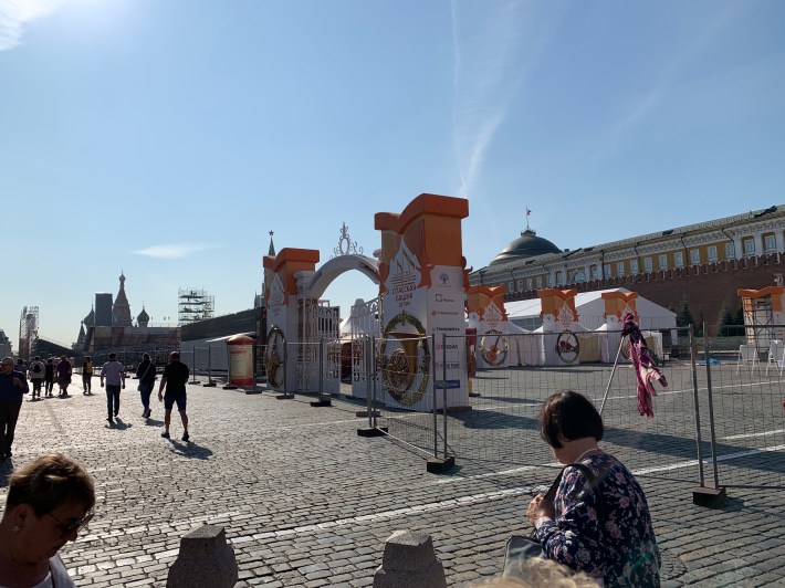 Red Square is not red and ‘red’ has nothing to do with communists. Red means beautiful. Not that it was particularly so on the day visited as it had been the site of a concert and they were dismantling the seating formwork. Good to see it is used for things other than military parades.