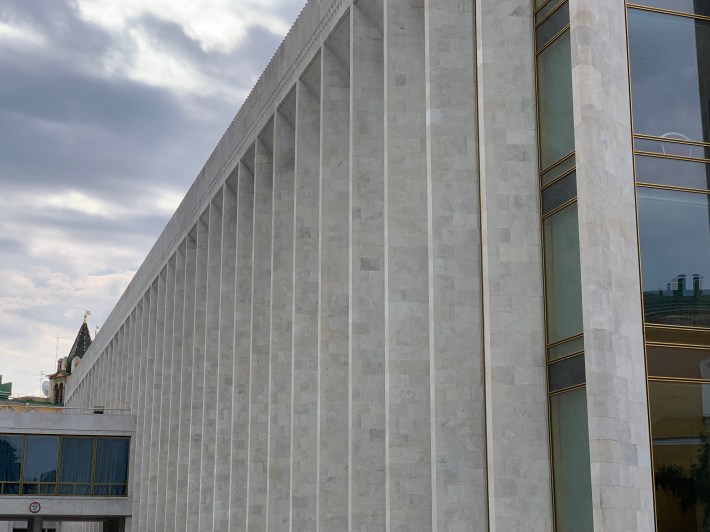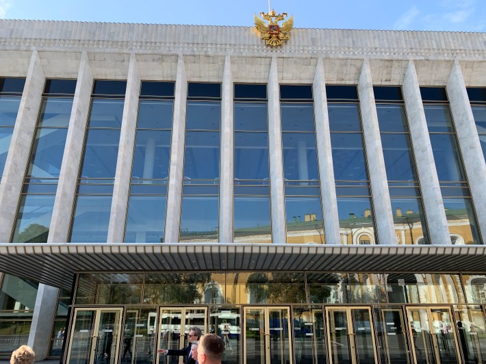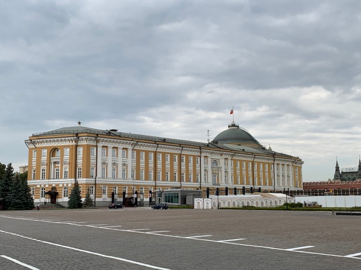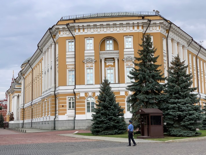 The Kremlin itself is a walled hill containing three cathedrals, many palaces (now largely museums) and a building used by the President (below).