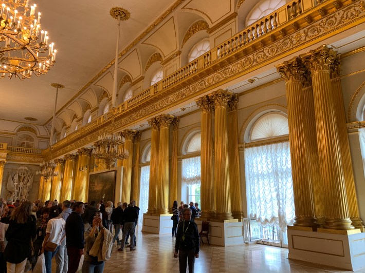 We were blessed by being the first group into the palace and below shows a room with no one in it. This didn’t last long as the Summer Palace is the most desired tourist destination in Russia. The level of opulence of the buildings was quite breathtaking. Hard to know where to look first.