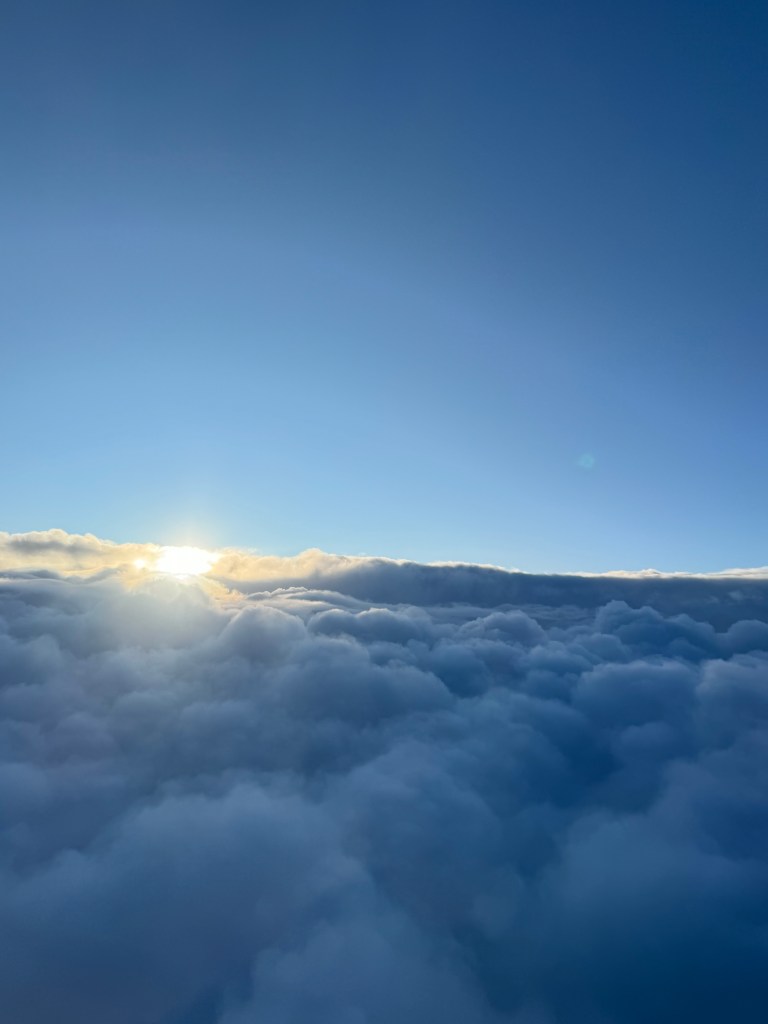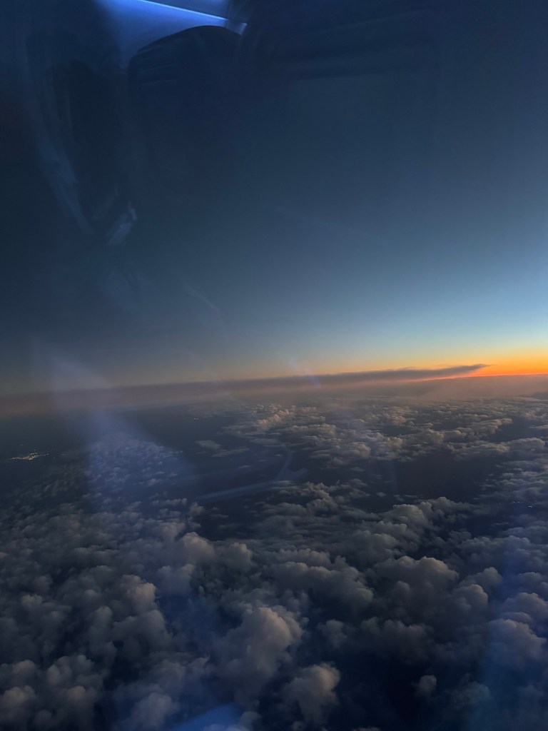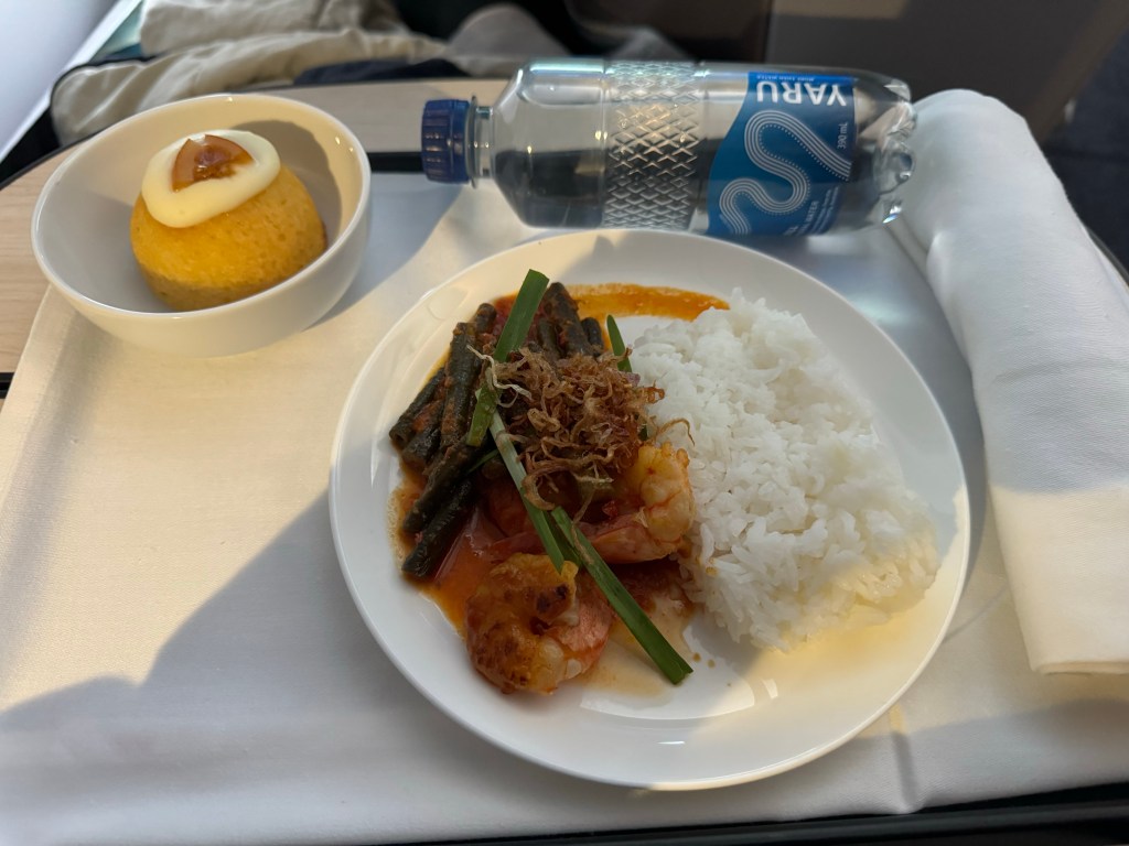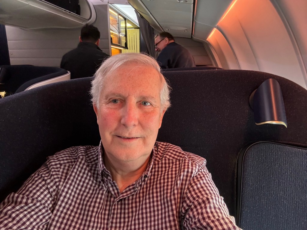 My seat, or cubby as preferred to think of it, was very new and comfy with every necessity except no in-flight internet (9 hours cut off from the world). I tried the new fad – raw dogging – you can google it, I couldn’t. Mostly I slept and was warm and comfortable. They even have an extra seat belt across your thighs when you are lying down! No flying around the cabin for me – except one moment when the seatbelt sign came on whilst I was in the loo and I had to go expeditiously clamber my way back to my cubby.