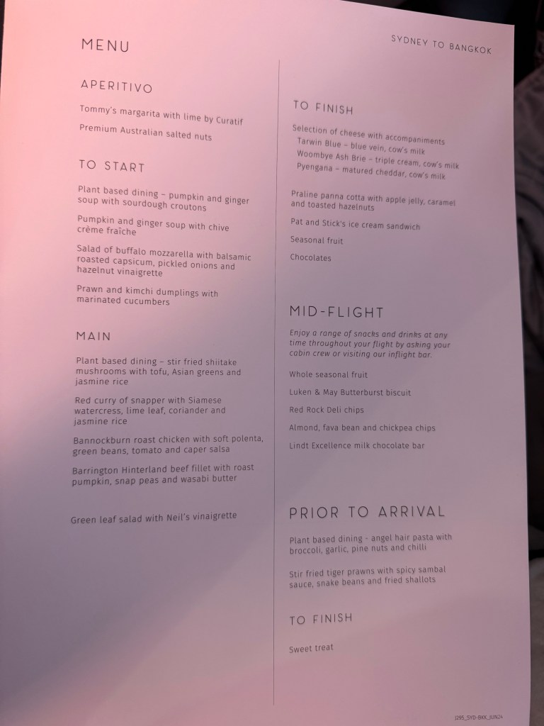 Although I was flying Qantas, and it was not a code share, the plane was a new FinnAir A330, staffed by FinnAir crew from Bangkok, all in that airline’s livery. The crew were efficient and understated, no bowing as Thai’s tend to do, no obsequious use of you name as if they know you and aren’t reading it off a piece of paper. They didn’t make it seem as if they had condescendingly allowed you on their personal aircraft. Very understated and impressive, even the safety video was just enough and no flag waving or wokeness.