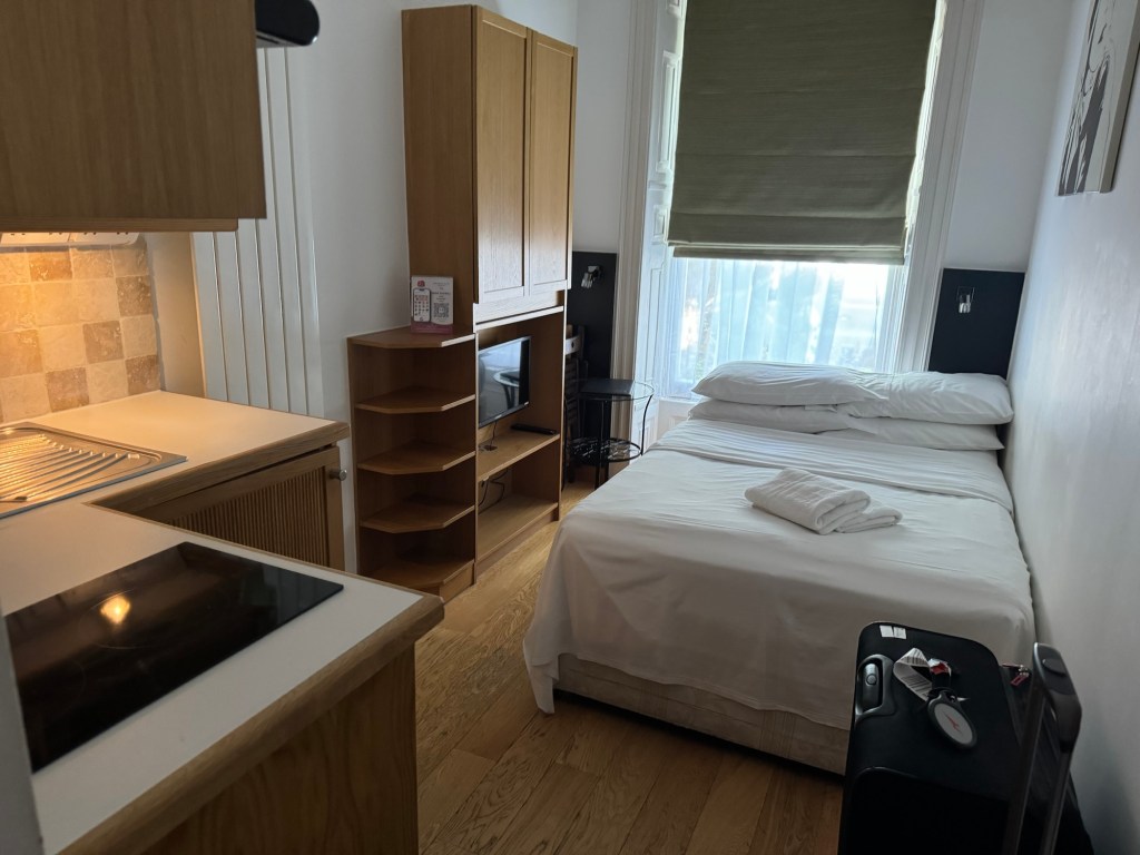 This time I am on the ground floor so I didn’t have to wrangle my suitcase up narrow Victorian staircases, but it is a bit noisier here and slightly claustrophobic. Still it will do for six nights.