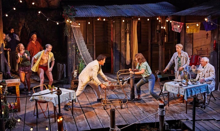 The setting is the veranda of a hotel in the Gulf of Mexico in 1940 and the four main characters are in different stages of desperation. Maxine Faulk (Anna Gunn), the hotel’s recently widowed owner, has an unsatisfied hunger for life. The Rev Shannon (Clive Owen), locked out of his church for fornication and heresy and reduced to escorting bus parties around Mexico, arrives to suffer one of his periodic breakdowns. He finds an unexpected soulmate in the virginal Hannah Jelkes (Lia Williams), a watercolourist who roams the world hustling a meagre living with her 97-year-old grandfather (Julian Glover), who is struggling to complete his final poem.