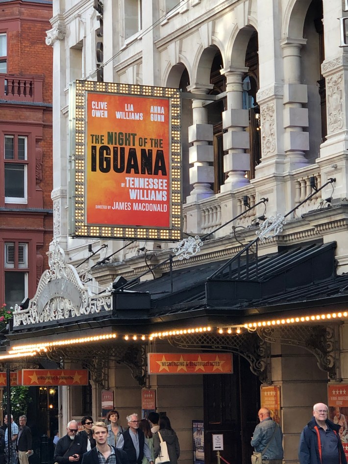 This evening I saw the final play of this year’s holiday. A rather long sabbatical for me, but not as long as the one suffered by the Reverend T Lawrence Shannon in Tennessee Williams’ 1961 play, The Night of the Iguana, which I have just seen at the Noel Coward Theatre right opposite my hotel in St Martin’s Lane.