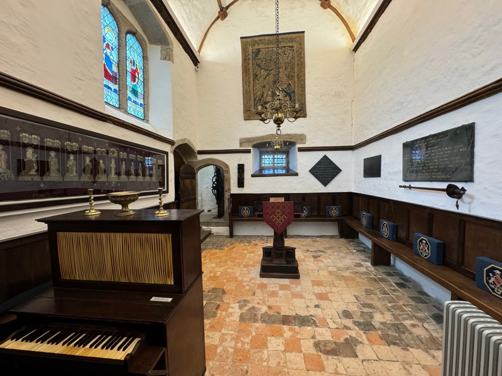 At the rear of the chapel is a rare survivor of the Tudor period, a mechanical clock, dating freely 1500.