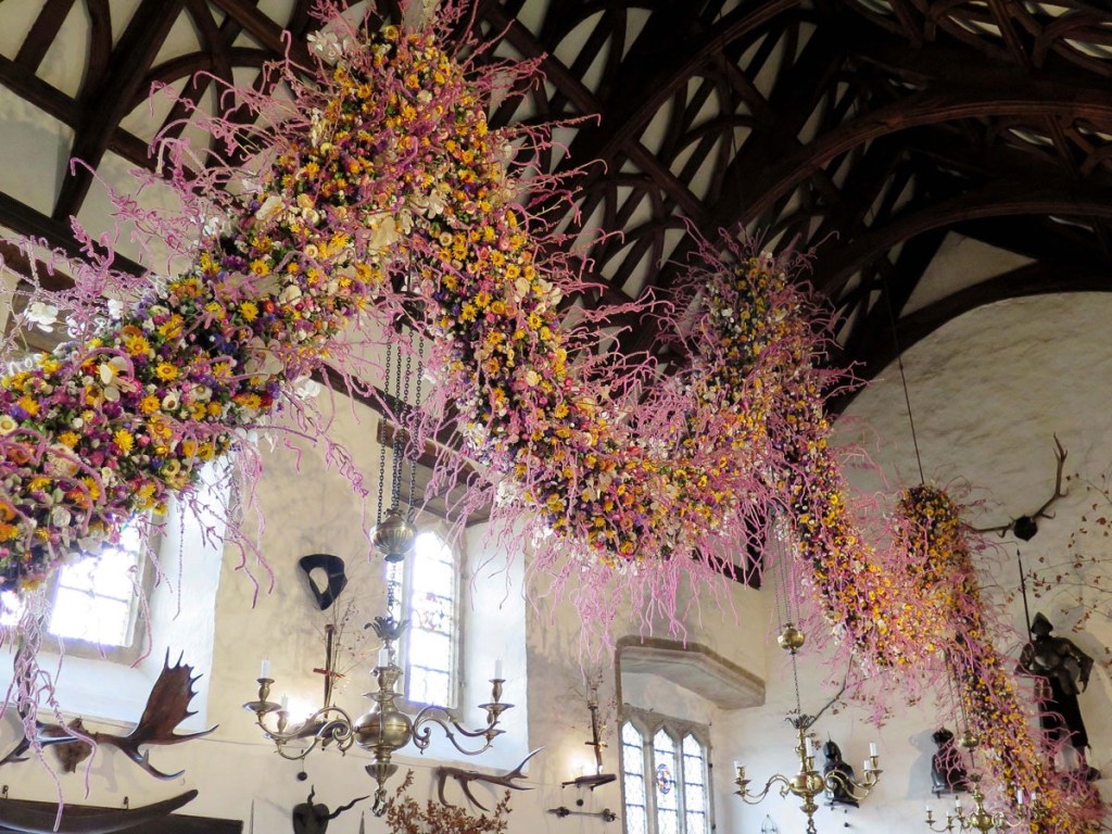 Each Christmas a special garland is produced to decorate the Great Hall. It comprises 32,000 diaries flowers, grown in the gardens, harvested over many months and dried before being hand woven in this Christmas decoration.