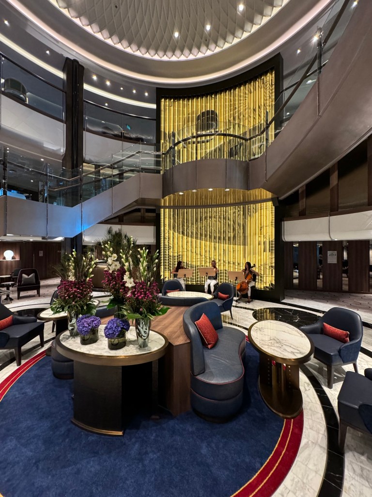 First impressions- very new feeling and appearance, and there is effective internet in cabins. Slightly different from the other Cunard Queens.