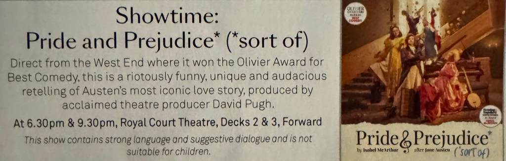 My dining friends are: Faith from Wales (purple hair and eye makeup), Christina from Maidstone, David from somewhere hyphenated north of Birmingham and Patsy from the Isle of Wight.