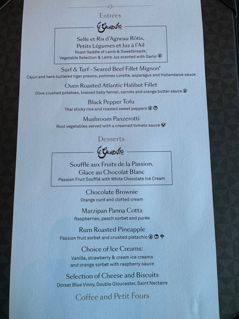 Evenings of days at sea mean dressing up for a Gala Dinner. That’s when you find one cufflink is messing. Do you put the one remaining one on the left or right sleeve? Which arm will get more exposure at table?