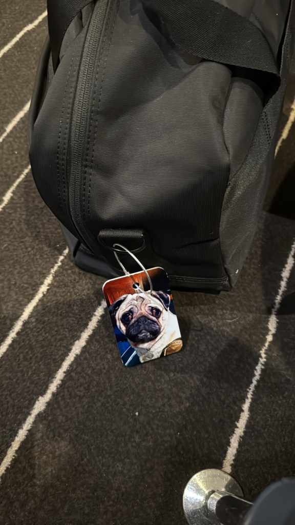 The late Duchess and I had a very pleasant flight. I remembered to get all my belongings out of the security tray at immigration, for once. The Qantas lounge in Melbourne was very full and the breakfast offering comprised sloppy egg (possibly powdered) and I showed my displeasure by dropping two rashes of bacon on the tiled floor which I had to kick them under the counter so as not to have to bend down in my new travel pants acquired from Sportsconscious in Church St. These dacks have to last a month so I didn’t want any grease stains before I have even left the country.