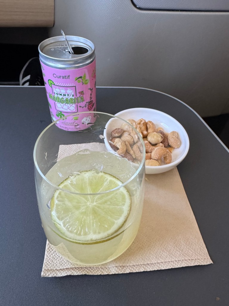The flight was very pleasant and the food was tasty. I began with a margarita, which in hindsight may have been an acting ingredient in what followed.