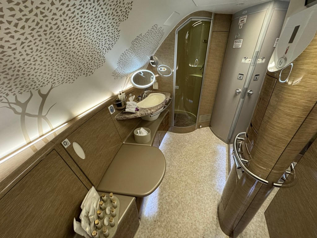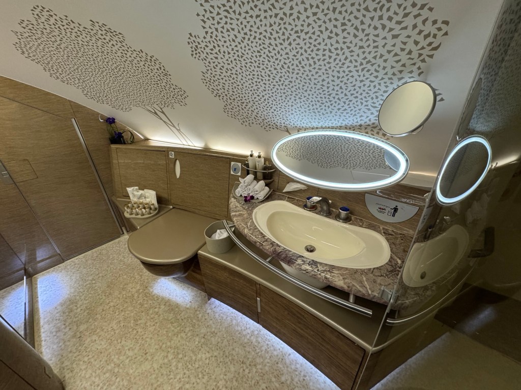 There was a spa bathroom which I used on the flight to Amsterdam.