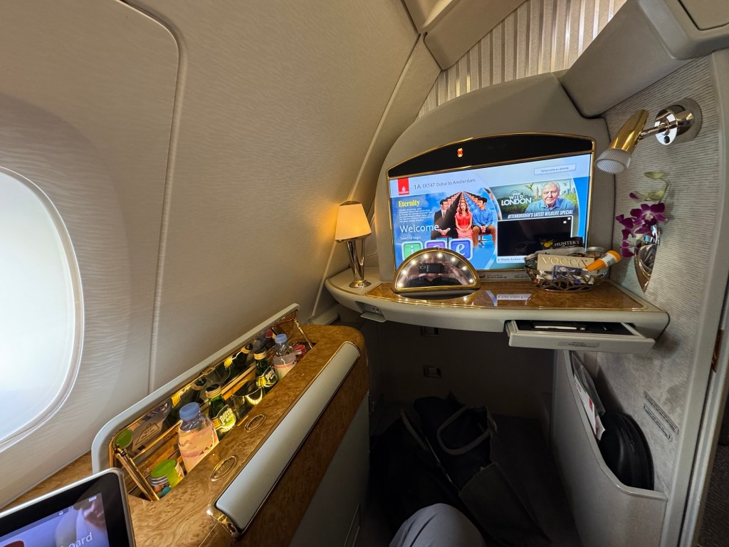 I have flown first class once before (always on points) but my flights from Hong Kong through Dubai to Amsterdam were a cut above.