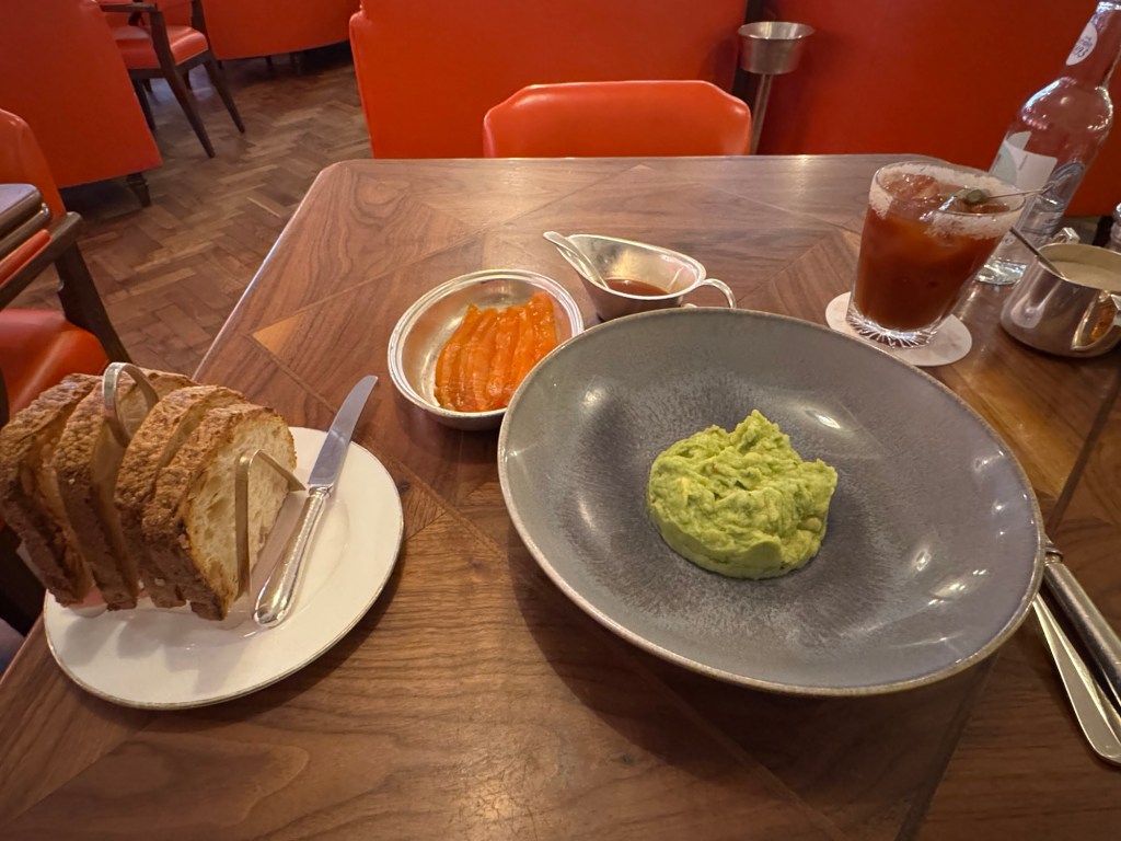 I liked their breakfast menu, particularly the avocado and Virgin Mary sauce, accompanied by a Bloody Mary. With a side of Scottish salmon. Yum.
