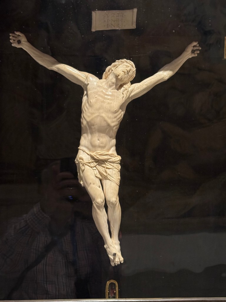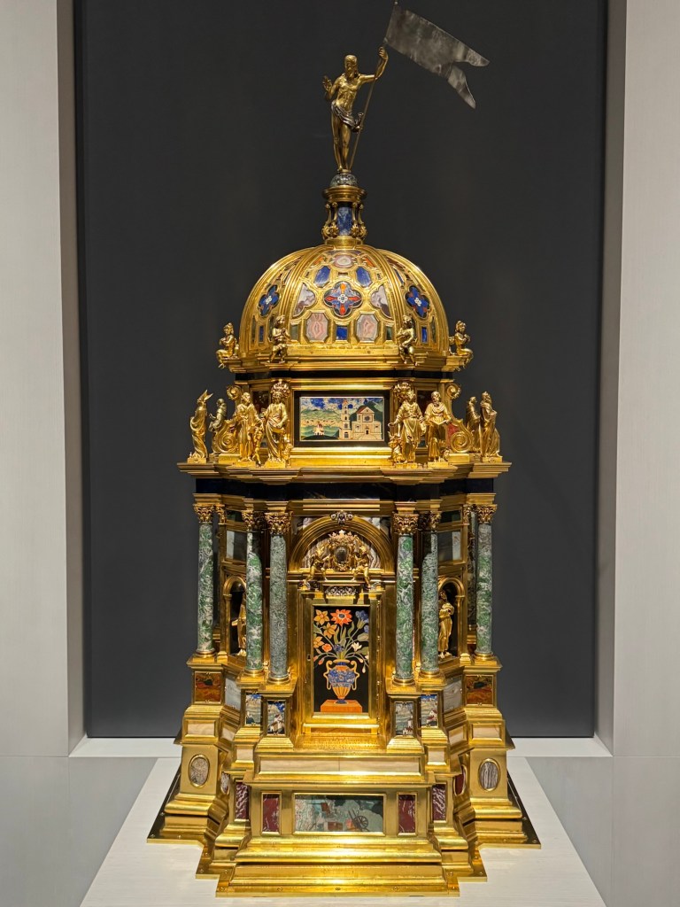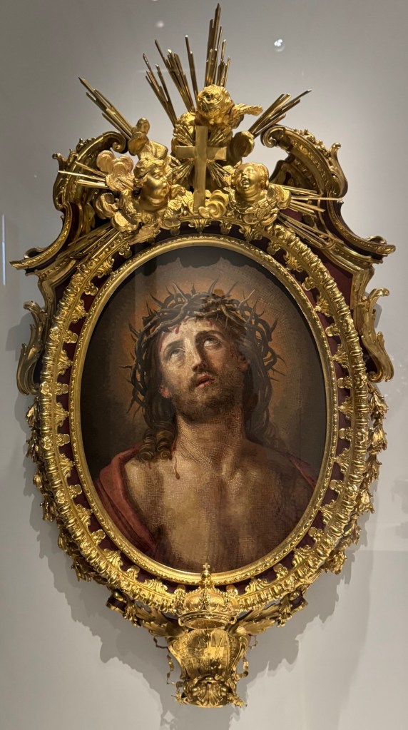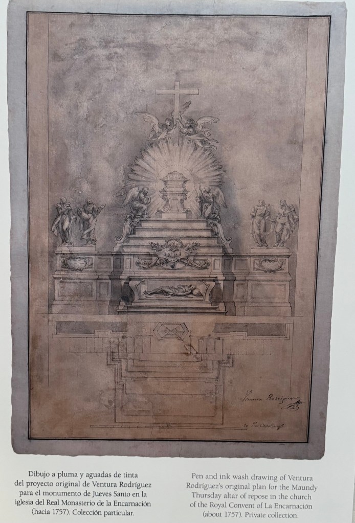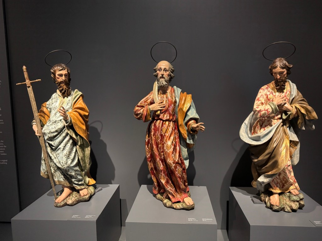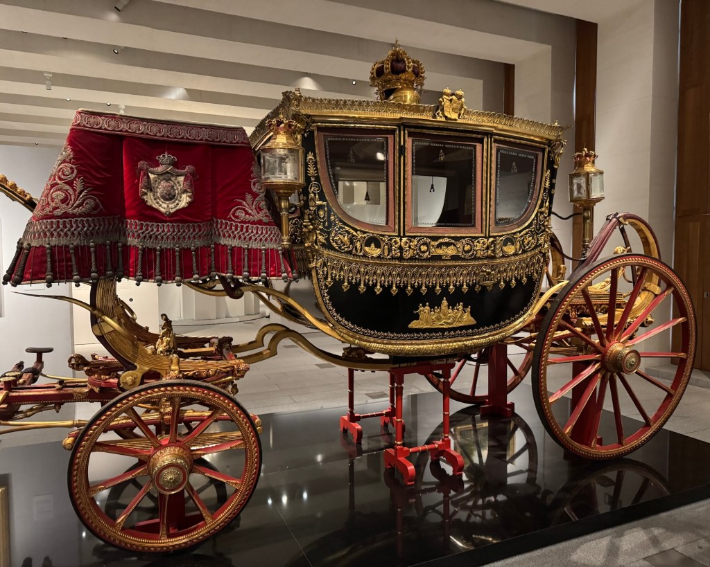 Juan de Flanders, Isabella the Catholic Queen, 1500-04Rogier van der Weyden, The Calvary, 1457-64Gian Lorenzo Bernini, Christ, 1564-66Domenico Montini, Tabernacle, 1619Madrid’s foundations, 9th CenturyAnnibale Fontana, Casket of Isabella Clara Eugenie, 1580-84, Domenic’s Theotokopoulus, El Greco, The adoration of the name of Jesus, 1577-79Juan Rodríguez de Barbia (silversmith), Portable Altar, before 1567Reliquary shaped like the Duomo of Milan, 16th century El Escorial workshop, Chasuble of the Saint Lawrence vestments, 1569-72El Escorial workshop, Cope of the Saint Lawrence vestments, 1569-72Anon. Mexican artist, St Joseph with the baby Jesus, 17th century Anon. Mexican artist, Immaculate Conception, 17th centuryTitian, The Crucifixion, 1565Gaspar Beccara, Piéta, 1560Giovanni Angelo Montosoli, Eagle Fountain, before 1539Juan Petoja de la Cruz, Philip III, 1603Juan de Anchieta, Virgin Mary, 1578Master of Portillo, St Clare receiving her habit in the Portiuncula Chapel, 16th century George Peter, Reliquary crucifix, 1621-22Antonio Carmona, Reliquary of Joanna of Austria, 1554Anon. Spanish artist, Joanna of Austria, after 1573Gerard Seghers, Herodias and Salome with the head of John the Baptist, 1630Caravaggio, Salome with the head of John the Baptist, 1607Andrea Vaccaro, Rest on the flight into Egypt, 1640-50La Rondana, St Michael the Archangel defeating the Devil, 1692Luca Giordano, The Raising of Lazarus, 1695-98Luca Giordana, The taking of Christ, 1698Andrea Belvedere, Floral Still Life, 1694-1700Giovanni Batista Foggnini, The Holy Family, 1679-83Herrera, Ratés & Churriguers, Columns from the Royal Hospital of the Virgen of Monserrat, 1674-78Pompey Leone, Philip II, 1568Louis Michael van Loo, Equestrian Philip V, 1737Apostolado, Andalusian origin, 17-18th century Philip de Lázló,Victoria Eugenie, 1927François Duquesnoy, Mercury with Pluto, 1630-40L’Abate Ciccio, Mater Dolorosa, 1734-5L’Abate Ciccio, Ecco Homo, 1734-5Corrado Giaquinto, Madonna and child with Ss Ferdinand, Barbara & Cecilia, 1755-6Niccoló Dell’arca, St John the Baptist, 1490Anton Raphael Menes, Flagellation of Christ, 1768Anton Raphael Menes, Christ falls on the way to Calvary, 1768Anton Raphael Menes, Lamentation of Christ, 1768Anton Raphael Menes, Everlasting Father, 1769Anton Raphael Menes, Noli me tangerine, 1768Castilian workshop, Chalice, 16th centuryChristofari and Giordoni, Ecco Homo, 1738Christofari and Giordoni, Virgin Mary, 1738Valadier (silversmith) & Buen Retiro Royal Hardstone workshop, ‘Dessertof Charles IV, 1778-86Chair and canopy of MariaLouisaof Palma, 1793-4Anton Raphael Menes, Immaculate Conception, 1774Royal carriageVentura Rodríguez, Altar of Repose, 18th centuryOriginal plans for Maundy Thursday Altar of Repose.GardensModel of Royal Palace environs including the new museum