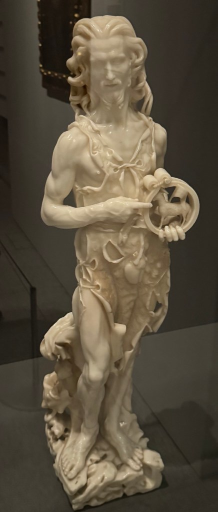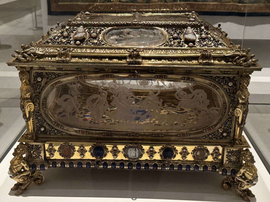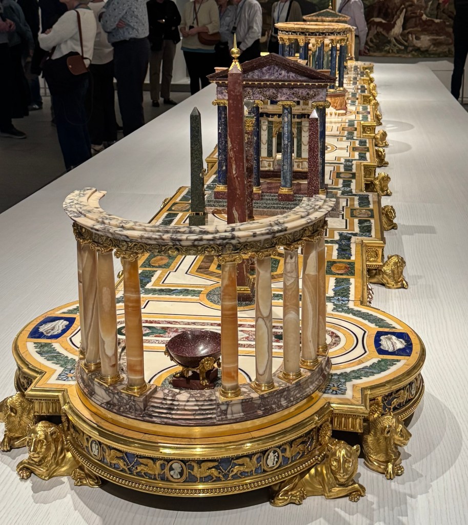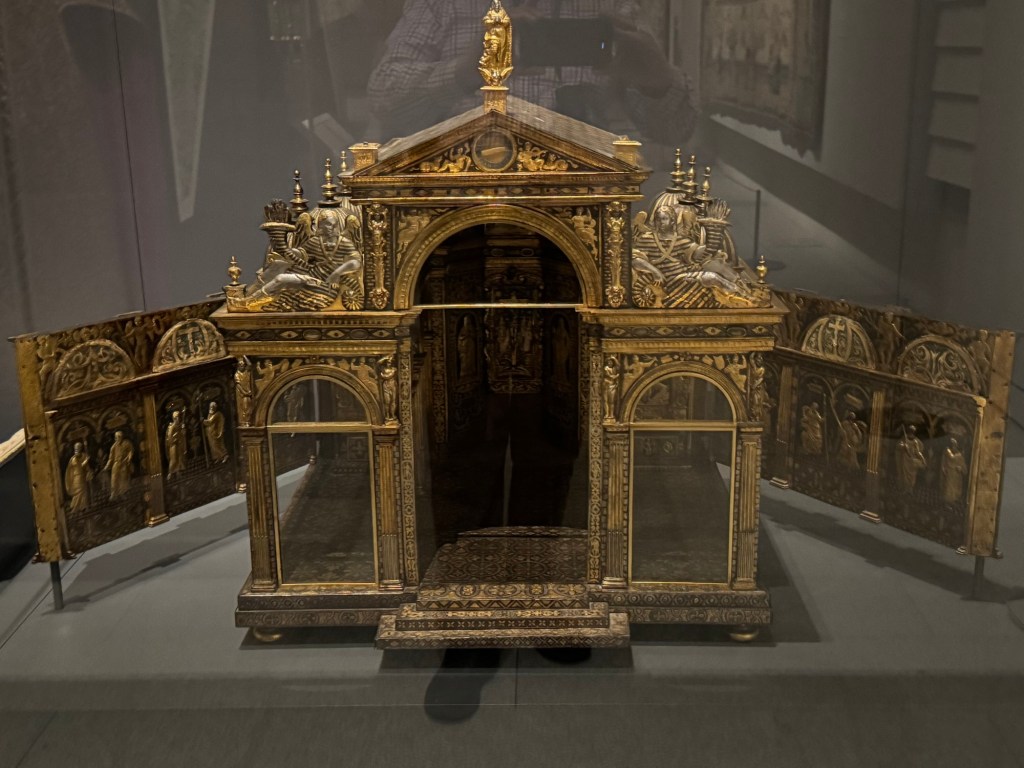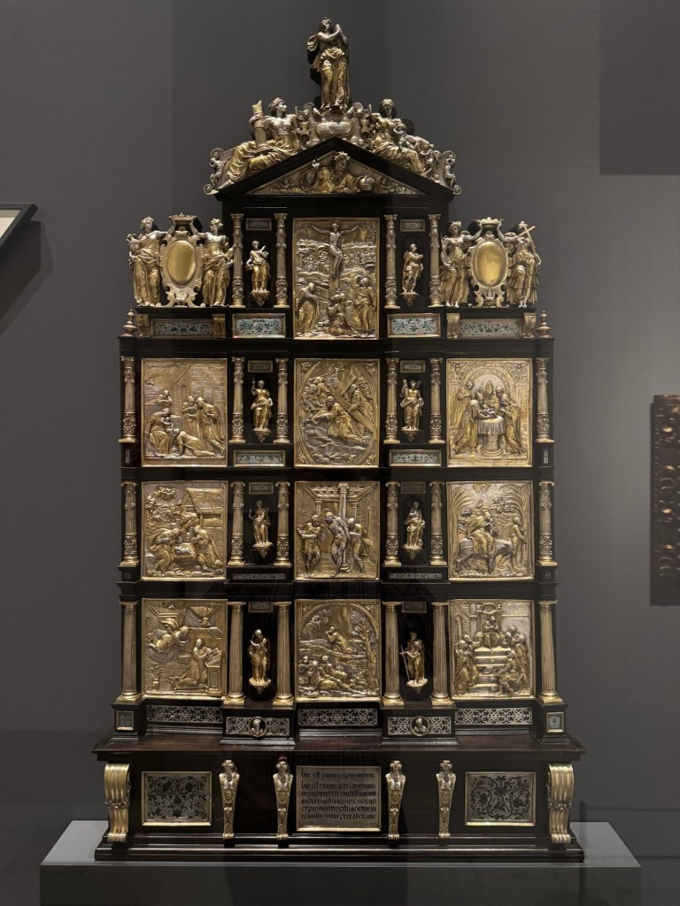 Juan de Flanders, Isabella the Catholic Queen, 1500-04Rogier van der Weyden, The Calvary, 1457-64Gian Lorenzo Bernini, Christ, 1564-66Domenico Montini, Tabernacle, 1619Madrid’s foundations, 9th CenturyAnnibale Fontana, Casket of Isabella Clara Eugenie, 1580-84, Domenic’s Theotokopoulus, El Greco, The adoration of the name of Jesus, 1577-79Juan Rodríguez de Barbia (silversmith), Portable Altar, before 1567Reliquary shaped like the Duomo of Milan, 16th century El Escorial workshop, Chasuble of the Saint Lawrence vestments, 1569-72El Escorial workshop, Cope of the Saint Lawrence vestments, 1569-72Anon. Mexican artist, St Joseph with the baby Jesus, 17th century Anon. Mexican artist, Immaculate Conception, 17th centuryTitian, The Crucifixion, 1565Gaspar Beccara, Piéta, 1560Giovanni Angelo Montosoli, Eagle Fountain, before 1539Juan Petoja de la Cruz, Philip III, 1603Juan de Anchieta, Virgin Mary, 1578Master of Portillo, St Clare receiving her habit in the Portiuncula Chapel, 16th century George Peter, Reliquary crucifix, 1621-22Antonio Carmona, Reliquary of Joanna of Austria, 1554Anon. Spanish artist, Joanna of Austria, after 1573Gerard Seghers, Herodias and Salome with the head of John the Baptist, 1630Caravaggio, Salome with the head of John the Baptist, 1607Andrea Vaccaro, Rest on the flight into Egypt, 1640-50La Rondana, St Michael the Archangel defeating the Devil, 1692Luca Giordano, The Raising of Lazarus, 1695-98Luca Giordana, The taking of Christ, 1698Andrea Belvedere, Floral Still Life, 1694-1700Giovanni Batista Foggnini, The Holy Family, 1679-83Herrera, Ratés & Churriguers, Columns from the Royal Hospital of the Virgen of Monserrat, 1674-78Pompey Leone, Philip II, 1568Louis Michael van Loo, Equestrian Philip V, 1737Apostolado, Andalusian origin, 17-18th century Philip de Lázló,Victoria Eugenie, 1927François Duquesnoy, Mercury with Pluto, 1630-40L’Abate Ciccio, Mater Dolorosa, 1734-5L’Abate Ciccio, Ecco Homo, 1734-5Corrado Giaquinto, Madonna and child with Ss Ferdinand, Barbara & Cecilia, 1755-6Niccoló Dell’arca, St John the Baptist, 1490Anton Raphael Menes, Flagellation of Christ, 1768Anton Raphael Menes, Christ falls on the way to Calvary, 1768Anton Raphael Menes, Lamentation of Christ, 1768Anton Raphael Menes, Everlasting Father, 1769Anton Raphael Menes, Noli me tangerine, 1768Castilian workshop, Chalice, 16th centuryChristofari and Giordoni, Ecco Homo, 1738Christofari and Giordoni, Virgin Mary, 1738Valadier (silversmith) & Buen Retiro Royal Hardstone workshop, ‘Dessertof Charles IV, 1778-86Chair and canopy of MariaLouisaof Palma, 1793-4Anton Raphael Menes, Immaculate Conception, 1774Royal carriageVentura Rodríguez, Altar of Repose, 18th centuryOriginal plans for Maundy Thursday Altar of Repose.GardensModel of Royal Palace environs including the new museum